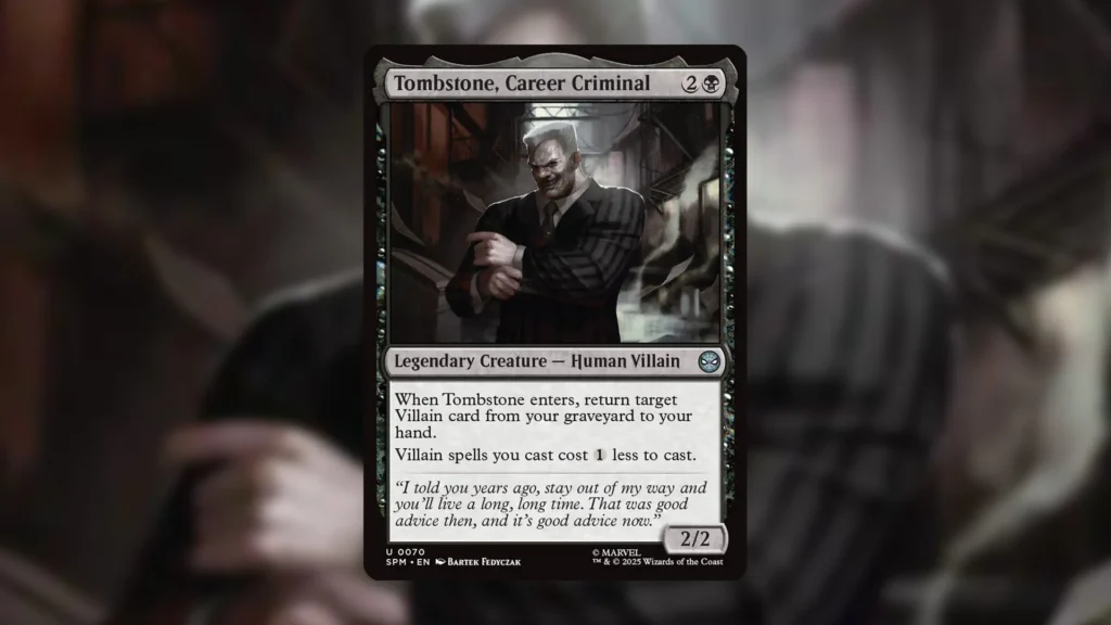 There are a lot of cards in MTG Spider Man that bring other cards from the graveyard back to the hand. Tombstone, Career Criminal represents a powerful recursion piece for the Villains archetype, and Damage Control Crew is an incredibly versatile option for the Gruul Mana Value 4 matters archetype.