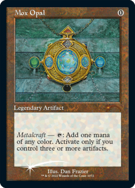 However, there is one series of promos that could be worth a large sum of money. The last product in the Festival in a Box is Dan Frazier’s Mox Box, which shows off a group of foil-etched, retro-framed cards from Dan Frazier himself. This Mox Box contains three cards, one of which is fairly expensive even in its cheapest form. The first card is Mox Tantalite, which is worth about $6 in traditional Modern Horizons form. Next is Sol Ring, which is worth very little traditionally, but the massive amount of play this card sees in Commander means that premium variants definitely have some interest. Saving the best for last, the heavy hitter is Mox Opal. Traditional versions of Mox Opal go for $75+, and this promo has the opportunity to go for more.