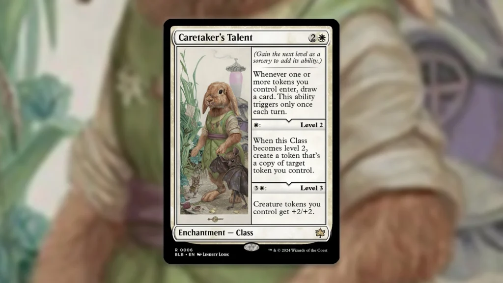 Like previous iterations of Mono-White Token Control, this list is centered around the power of Caretaker’s Talent. Even ignoring the benefits of Level 2 and 3, simply getting this card onto the battlefield should reward you with a flow of card advantage. Of course, if you ever run out of ways to make tokens, Level 2 provides an efficient way to copy one of your tokens and trigger the Class again.