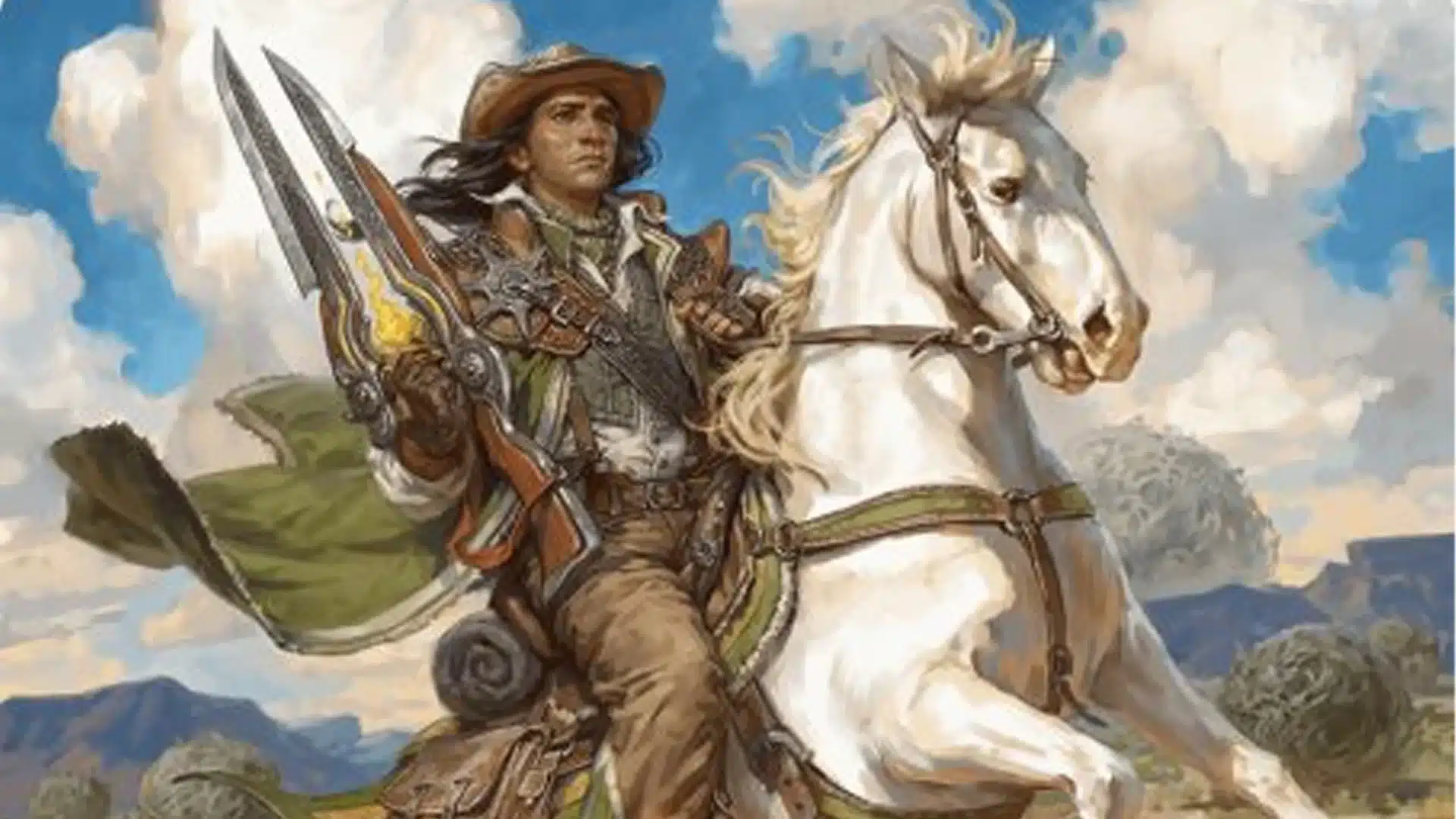 The first card is Wylie Duke, Atiin Hero. Wylie Duke doesn’t naturally tap when it attacks because of Vigilance, but Saddling up Seraphic Steed or Crewing Unidentified Hovership gets you your card advantage just fine.