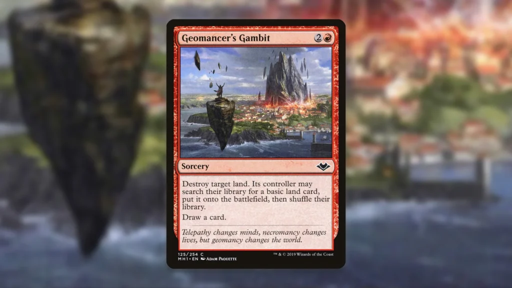 This deck goes as far as to play Geomancer’s Gambit as a support piece. Geomancer’s Gambit is more mana intensive than Cleansing Wildfire for the same effect. Yet, given how much you care about redundancy, even this inefficient common makes its way in as a four-of! This is Geomancer’s Gambit’s first major result in Modern in quite some time and just goes to show that even mediocre designs can have an impact in the right deck.