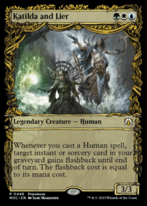Katilda and Lier was the card that MTG designer Gavin Verhey opened in his sample Prerelease kit. This Commander legal features two Legendary characters featured in the recent return to Innistrad. Katilda is a Legendary Creature that cares about the Human creature type, while Lier grants the absurdly powerful ability of granting Flashback to all of your Instants and Sorceries. Katilda and Lier offer a very affordable three-mana Legendary Creature that features an ability that meshes both of these creatures together. Whenever you cast a Human spell, you can give target Instant or Sorcery in your graveyard Flashback. The Flashback cost is equal to the spell’s mana cost.