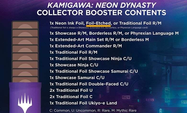 As you can see from the contents of a Collector Booster in the image below, there’s only one slot in the pack that you can potentially open a foil-etched. But even then, it’s not guaranteed.