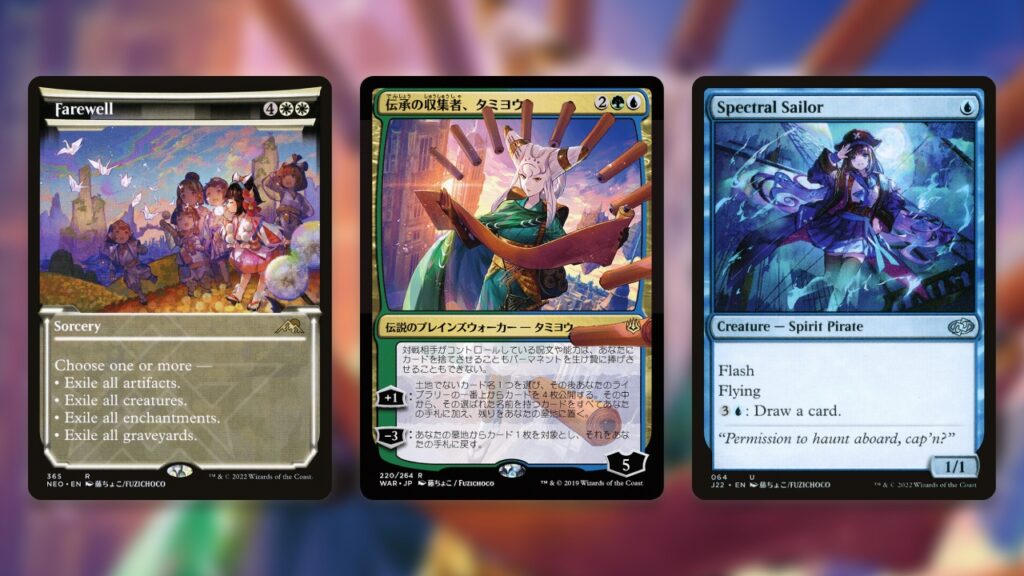 That name may be familiar to you if you’ve followed Magic art closely over the last few years. Fuzichoco has worked on several pieces for the game, all in a distinctly ‘anime’ style. These have largely been special alternate art versions of cards, whether that’s a frame-breaking Tamiyo, Collector of Tales from War of the Spark, or a surprisingly cute take on the infamous Farewell from Kamigawa: Neon Dynasty.
