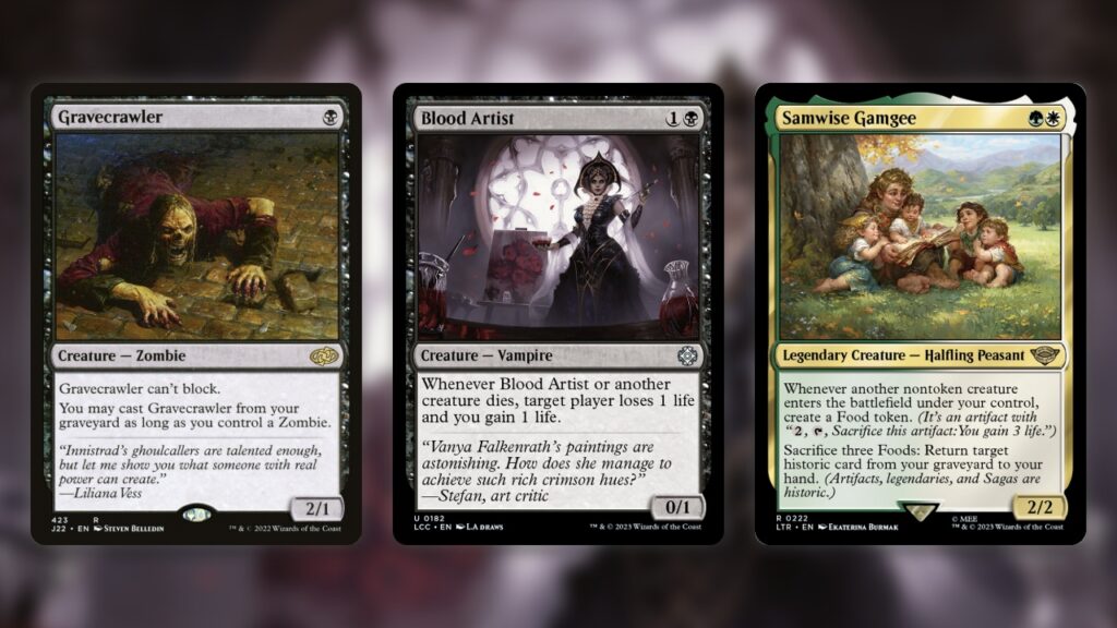 Probably the best of these combos, and the one that most players are talking about, is the one with Gravecrawler and Blood Artist. In a Mono-Black deck, you can play Gravecrawler on turn one, Blood Artist on two, then Soultrader on three. Provided your opponent doesn’t remove any of these creatures, you can end the game immediately as soon as they’re all in play.