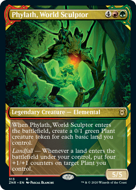Since our deck is entirely basic lands and we don’t have reliable ways to draw cards, we have to plan out our turns so that we don’t run out of steam. Generally, we want to start using our emblem when we have 4 mana if we’re on the play, or 3 mana if we’re on the draw. Starting on these turns ensures that we will be able to our 9 mana and 10 mana turns pretty easily. Also, the 1 and 2 mana creatures are pretty weak so they’re going to serve more as chump blockers than anything.