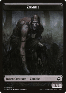 - At the beginning of your end step, if you’ve lost two or more life this turn, create a 2/2 Black Zombie creature token.