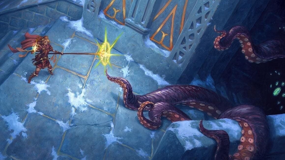 Honestly, you basically want to just search in MTG Arena for every card with the word “dungeon” on it in Blue and White, and then just plop them into the deck, but there are a few star players here that really help boost the deck’s power level.