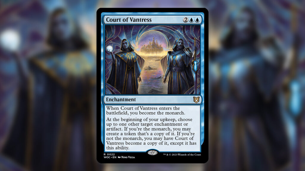 The artifacts and enchantments in question don’t even need to be yours. Court of Vantress could easily make copies of gigantic artifacts your opponents drop into play, easily allowing you to keep up with the advancing board state.