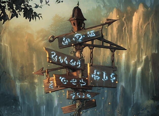 The next blue card I’d like to highlight is Misleading Signpost. For a moment, you look at the effect and think “Gee that’s neat, there are so many ways to abuse this card!” but then you look again and realize it’s a mana rock! Wow, just wow. Sometimes you may look at a player and think “Why are they not attacking, there is a free attack!” But now, with Signpost, not attacking is a legitimate tactic every time three mana is open. This card can go into any deck because it’s a mana rock with flash. At three mana most rocks are not desirable but this one has a game altering effect while also giving you long term value. Even if there’s nothing going on, you can just Flash in your rock at EoT. A mana rock that is effectively free sometimes is worth considering. But one that can make a different player than you die in the face of a huge alpha strike? Definitely worth playing!