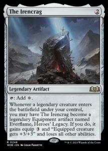 This is an interesting design choice and a good look for Wizards. A two mana rock is always worth considering. Because it is Legendary, The Irencrag can have other applications. It also turns into an Equipment if you need it and that is a shoe-in for a large number of decks.