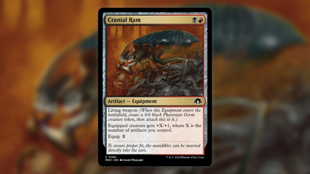 Today, on June 6th, 2024, Wizards of the Coast announced that Cranial Ram has been pre-banned in Pauper. This was revealed in an article written by Gavin Verhey. Previously, Verhey has teased that a common from Modern Horizons 3 was going to be pre-banned, so this isn’t a surprise. From the moment it was revealed, many players expected Cranial Ram was the soon-to-be-banned card.