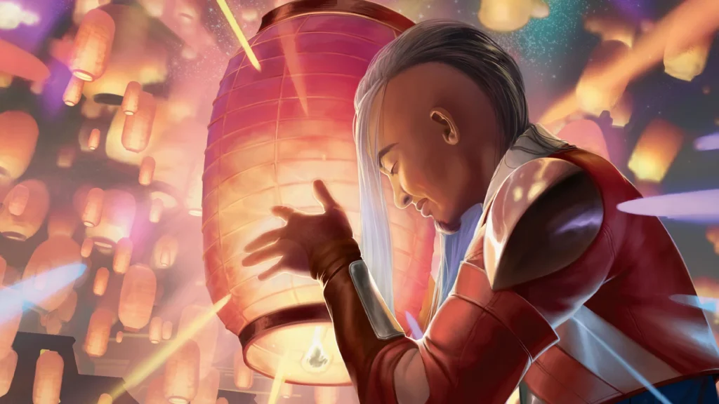 The second design portrays the same artwork as the aforementioned Chromatic Lantern promo. Niko Aris, one of MTG’s prominent nonbinary characters, is shown at the forefront of the image.