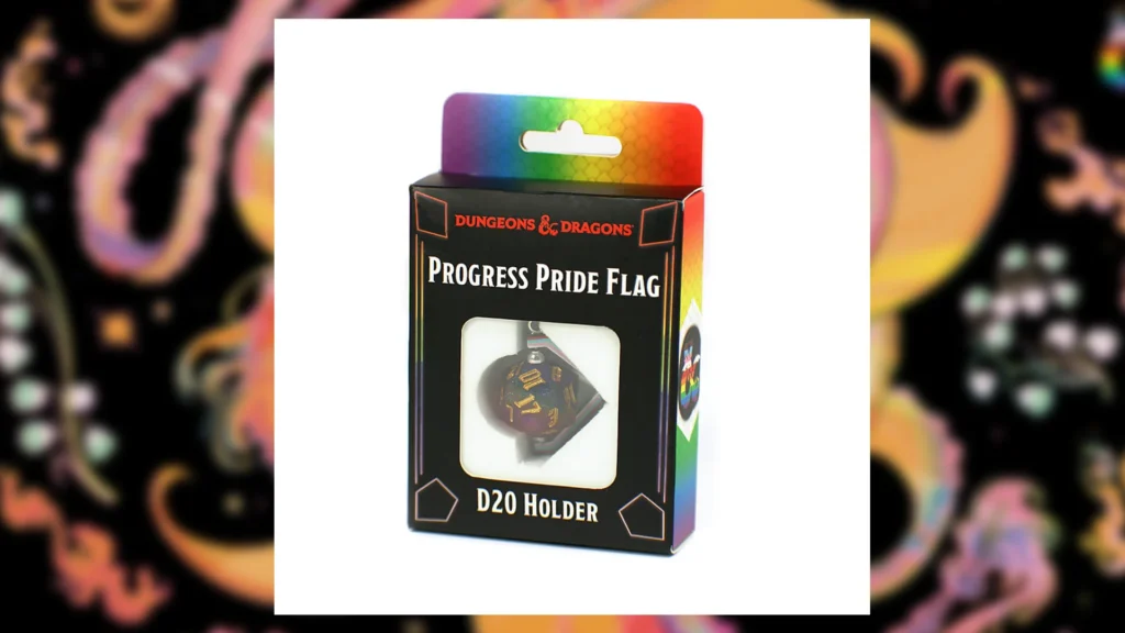 Anyone interested in picking up the Progress Pride dice should also look into picking up a Progress Pride flag d20 holder. This item does a great job protecting your Dungeons and Dragons dice while helping ensure they don’t get lost.
