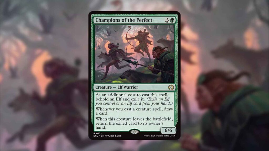 Notably, this added flexibility should speed up the mechanic, while allowing noncreature typal cards to satisfy the cost. While this is helpful, it’s unclear how widespread this mechanic will be in Lorwyn Eclipsed. While Champions of the Perfect is the only officially spoiled Behold card so far, the leaks we’ve seen indicate we should be getting a cycle of these cards.