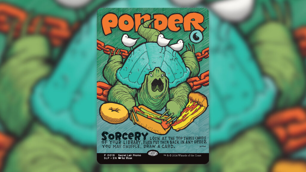 Players interested in this Ponder need to buy some souvenirs from the official Wizards of the Coast shop. Every $150 spent will grant you one copy of this new Ponder with artwork from Jay Ryan. This, combined with some exclusivity, may mean that these Ponders are a bit more expensive than average.