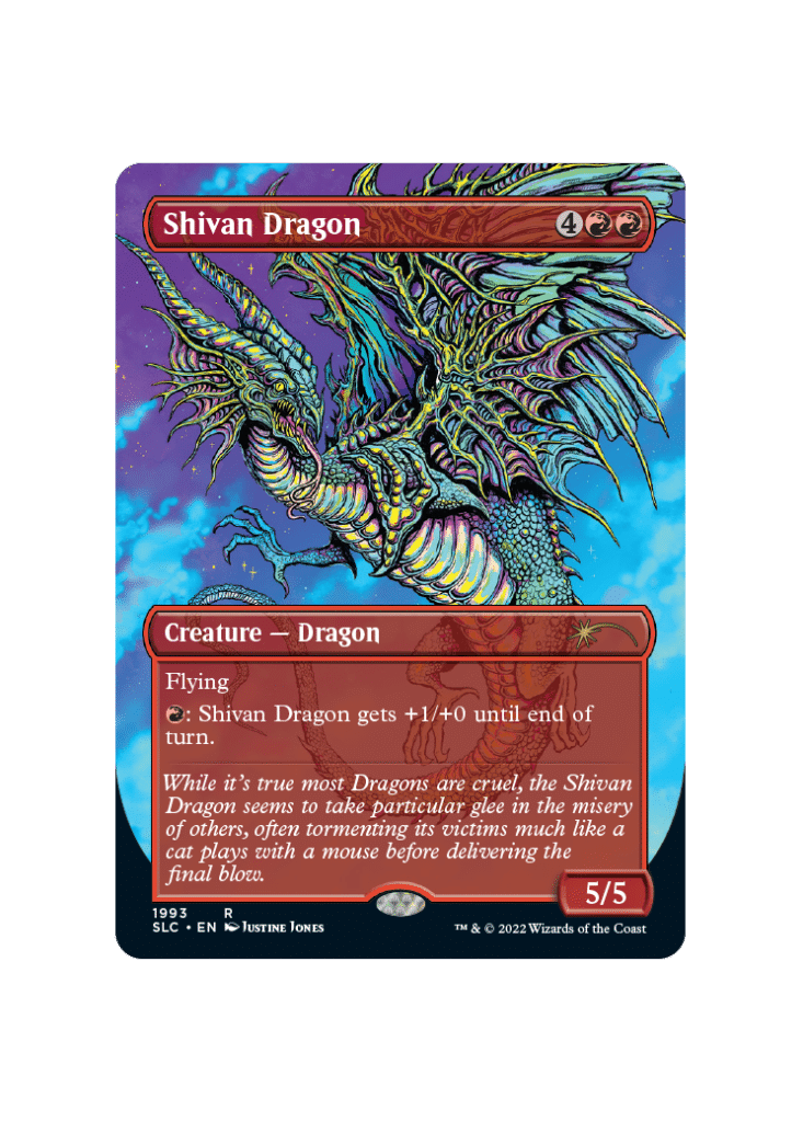 Because Alpha versions of Shivan Dragon exist, there is a vast range of prices available for Shivan Dragon, depending on how rare your copy of it is. If you happen to have an Alpha version of the card, it can go for over $10,000. The cheapest version of this card is worth less than a dollar. Since this will be slightly rarer than the average Shivan Dragon, it’s safe to say that the price will likely, be around a dollar, if not a bit more.