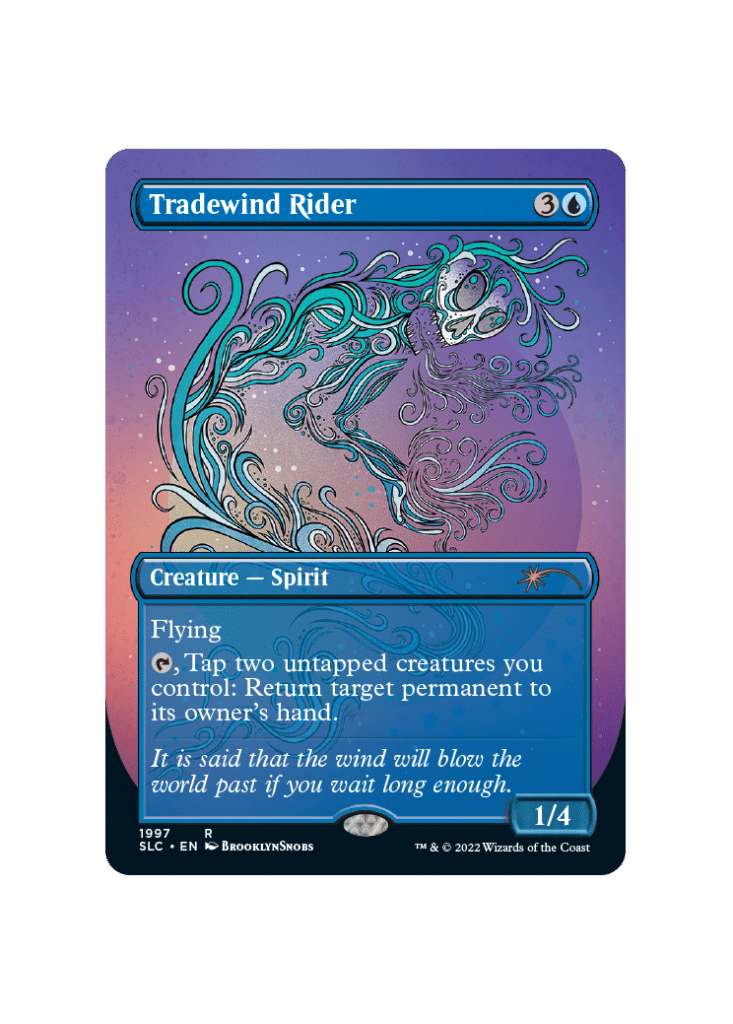 Tradewind Rider is a card exclusively printed in Tempest up to this point. While it originally had a value closer to $8 on the secondary market, this card has been on a slow, downwards trend for a while now. This reprint will likely cause the price of Tradewind Rider to drop since its value seems to be based on its rarity. That said, most pricing sites currently have this card priced a bit higher than $3.