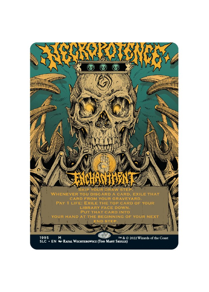 Another one of the seven cards revealed as a preview for this Secret Lair, Necropotence has a vast history in competitive MTG. Necropotence allows you to exchange your life total for cards, making it one of the most powerful draw engines in the entire game. This has allowed it to show up in competitive MTG multiple times, becoming infamous in the process.