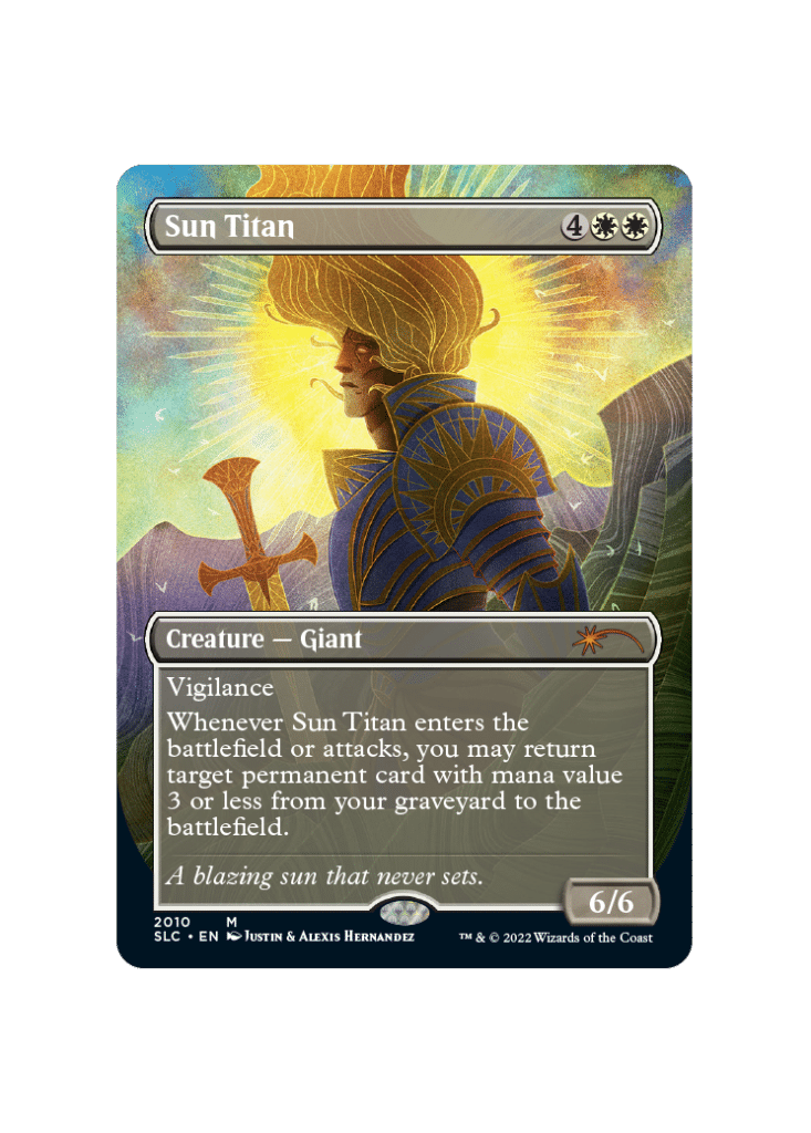 The Titan cycle are incredibly powerful effects in MTG. Like Dragonlord Ojutai, Sun Titan is a card that performs much better than its cost. This was also printed to death in Commander preconstructed decks but is a fantastic resource to recur a ton of value until it gets answered.