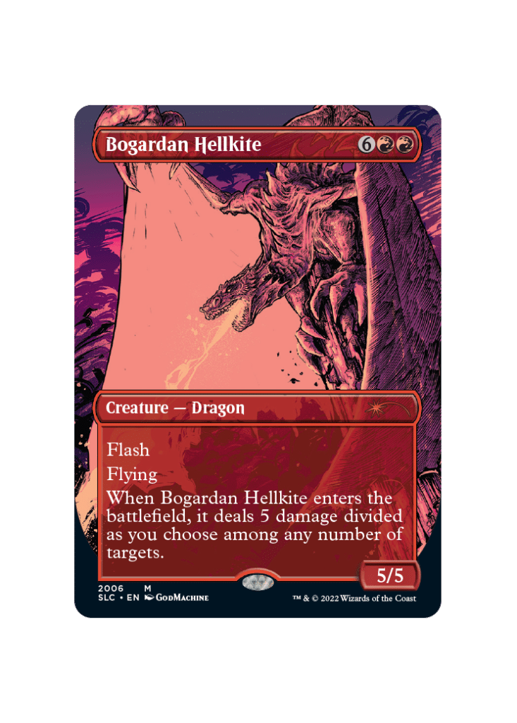 A big, scary dragon that can kill a lot of things. Eight mana for this effect is somewhat underwhelming outside of a dragon deck, but Bogardan Hellkite can blindside your opponent in combat. A long time ago, however, this card was the end boss in a Dragonstorm combo deck that once frequented the top tables of competitive play. Provided is an example of what a Dragonstorm Hellkite deck is capable of in perfect form.