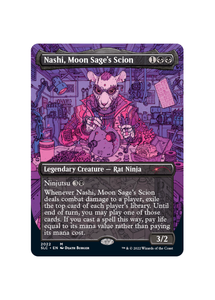Nashi has not had a massive impact on competitive MTG. That said, the card shares a powerful effect with some cards that see some competitive play, like Bolas’s Citadel. While the card does not have an insane secondary market price, this Kamigawa: Neon Dynasty Mythic is a fantastic Commander card in any deck that plays creatures.