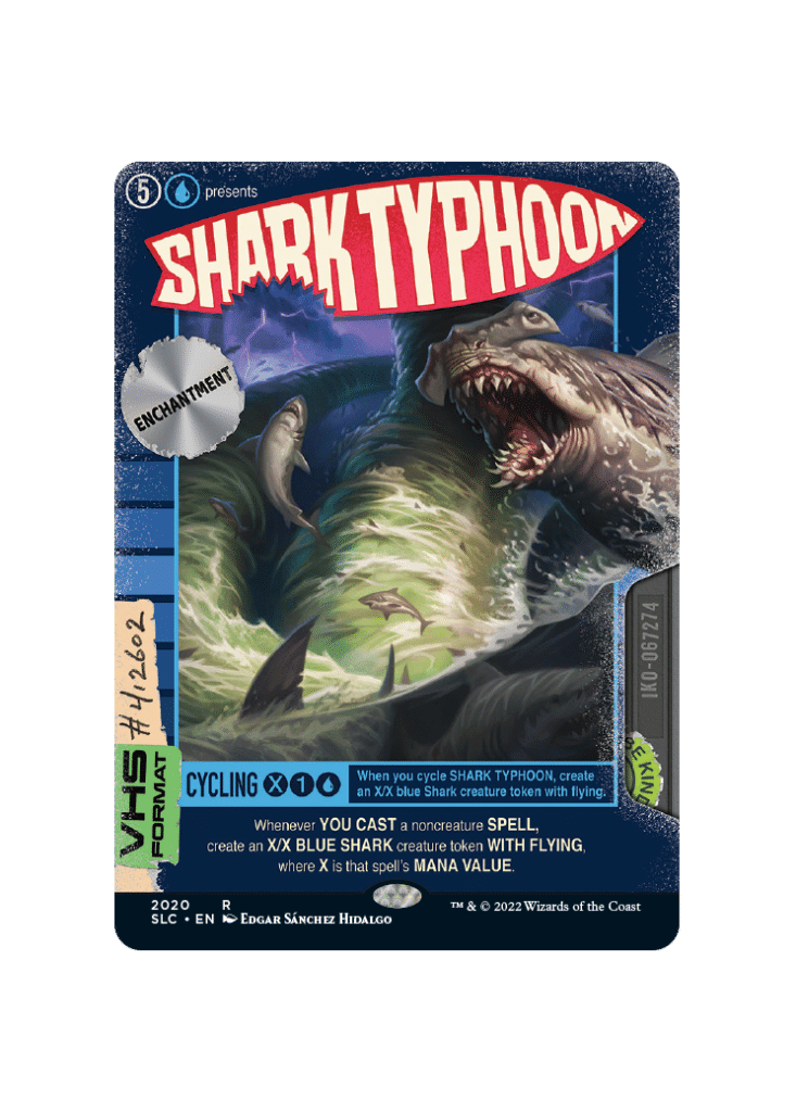 While many did not take this card seriously because of its unfortunate likeliness to the Sharknado movies, Shark Typhoon is an absolute beast of an MTG card. This card functions as a win condition and, most importantly, a way to get a creature into play that cannot be countered. This became incredibly important as soon as it was released, as Teferi, Time Raveler was a menace that held multiple formats by the throat. Being able to put Shark Tokens into play at Instant speed while ignoring Teferi’s passive instantly rose this card to become a competitive all-star. It continues to see play in control decks across formats to this day.