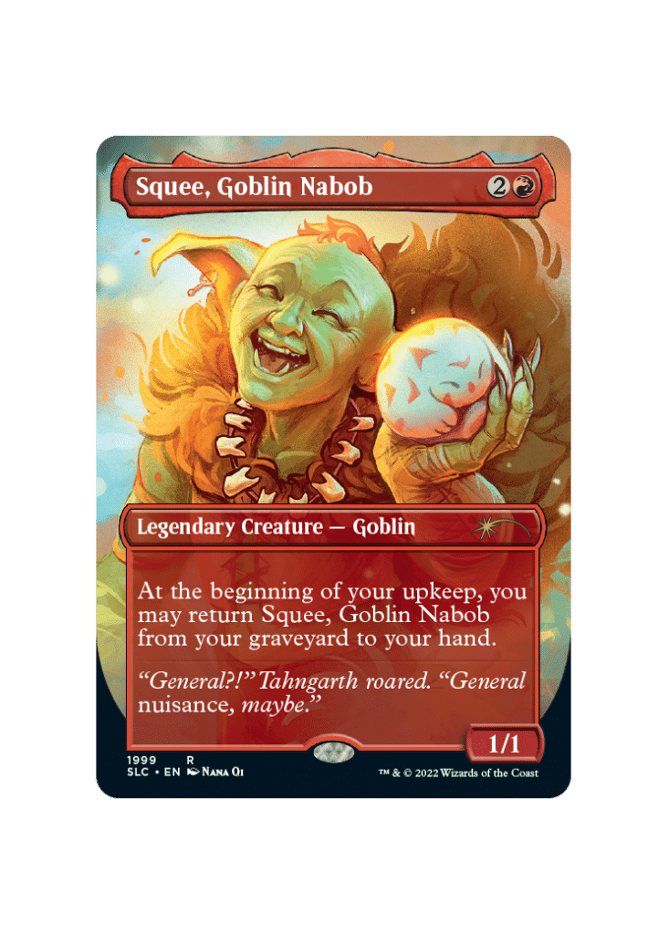Squee has an ancient history in MTG’s lore. He seemed to avoid death on a much-too-consistent basis narrowly, so the creators turned it into a gag and made Squee immortal. While this is on the butt-end of a few infinites in Commander, Squee is another card whose reprints far surpass his demand. That said, Squee fans should be happy with his new Dominaria United iteration, which looks to see play across multiple formats.