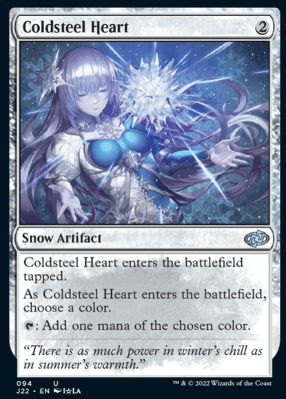 Alongside two new Spoilers, two new artworks for cards sharing the same pack lists were also shown! Coldsteel Heart offers a glimpse at the new Anime or Manga artwork that will frequent these Jumpstart 2022 Boosters. According to the Monthly MTG announcement host Blake, these artworks should be in “every packet” of Jumpstart 2022.