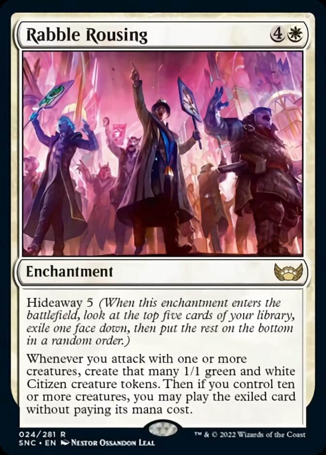 It’s extremely easy to satisfy Rabble Rousing’s hideaway condition with Isshin, allowing you to freely cast whatever card you found on the top of your library when you played the enchantment. But that’s the cherry on top when this card is in your Isshin deck.